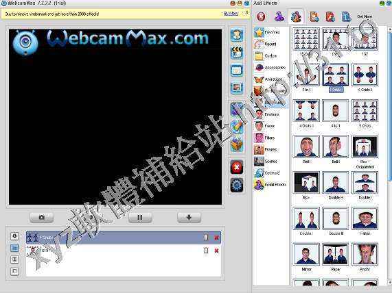 Camfrog, Skype, Paltalk, Yahoo Messenger。支援超過1,000種效果,包括鑲嵌效果,
